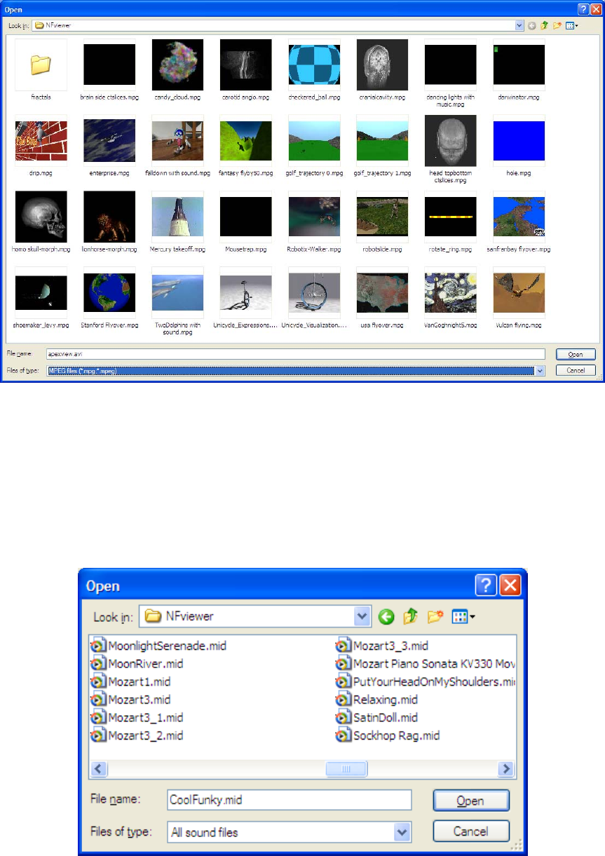 Selecting sound files is similar to selecting animation files. File types of wav, mp3, or mid can be