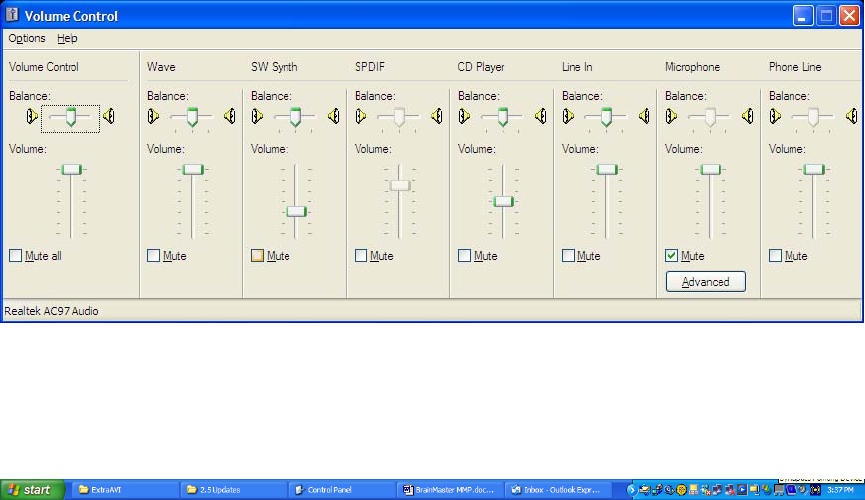 either by using “My Computer/Control Panel/Sounds and Audio Devices/Volume”, although your